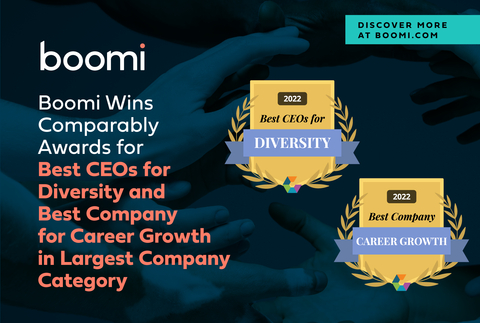 BoomiTM ผู้นำด้านการเชื่อมต่ออัจฉริยะและระบบอัตโนมัติ ในวันนี้คว้าสองรางวัลจาก Comparably แพลตฟอร์มด้านวัฒนธรรมในสถานที่ทำงานและชื่อเสียงของแบรนด์องค์กรชั้นนำ ในประเภทบริษัทที่ใหญ่ที่สุดพร้อมกับผู้ได้รับรางวัลรายอื่น ๆ ในปี 2022 อย่างเช่น Microsoft, Adobe, IBM, Uber, Uber และ SADA ซึ่งได้รับเกียรติจากรางวัล Best CEOs for Diversity และ Best Company for Career Growth อ้างอิงจากผลตอบรับของพนักงานที่ไม่เปิดเผยตัวจากพนักงานทั่วโลกมากกว่า 1,700 คน Boomi ติด 50 อันดับแรกของบริษัทที่ใหญ่ที่สุดสำหรับความมุ่งมั่นและความสำเร็จในด้านความหลากหลายและความก้าวหน้าในอาชีพ